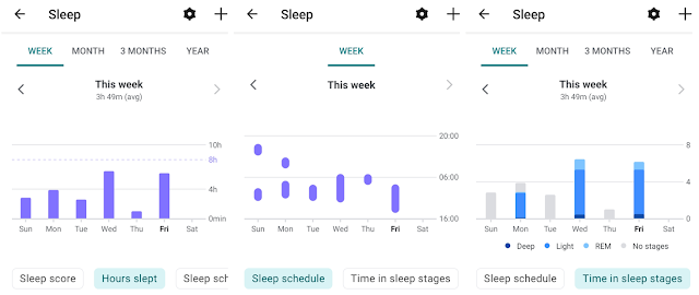 While I can verbally relate my lack of sleep to my wife and doctors, the Fitbit app provides hard statistics in a graphical form. As you can see below I'm typically getting less than 4 hours of sleep a night where most of it is light sleep with lots of awaking moments in between. Wednesday and Friday where my best sleep day/nights. My point here is having this app track my sleep cycles and my heart rate can help myself and others (medical) understand the data and make good decisions on next steps.